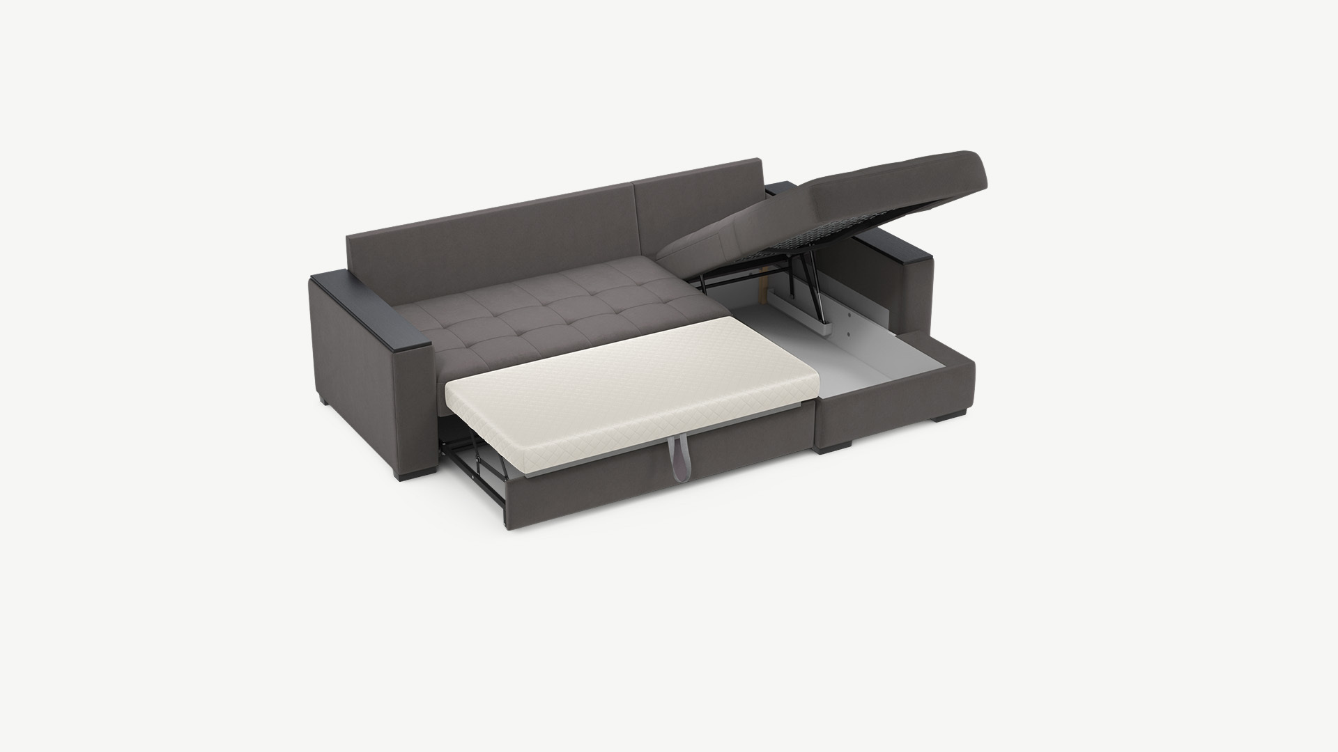 Оттоманка обеспечивает дополнительное пространство для отдыха, благодаря которому Вы можете располагаться с максимальным комфортом, вытянув ноги. Под данной секцией расположен вместительный бельевой короб.