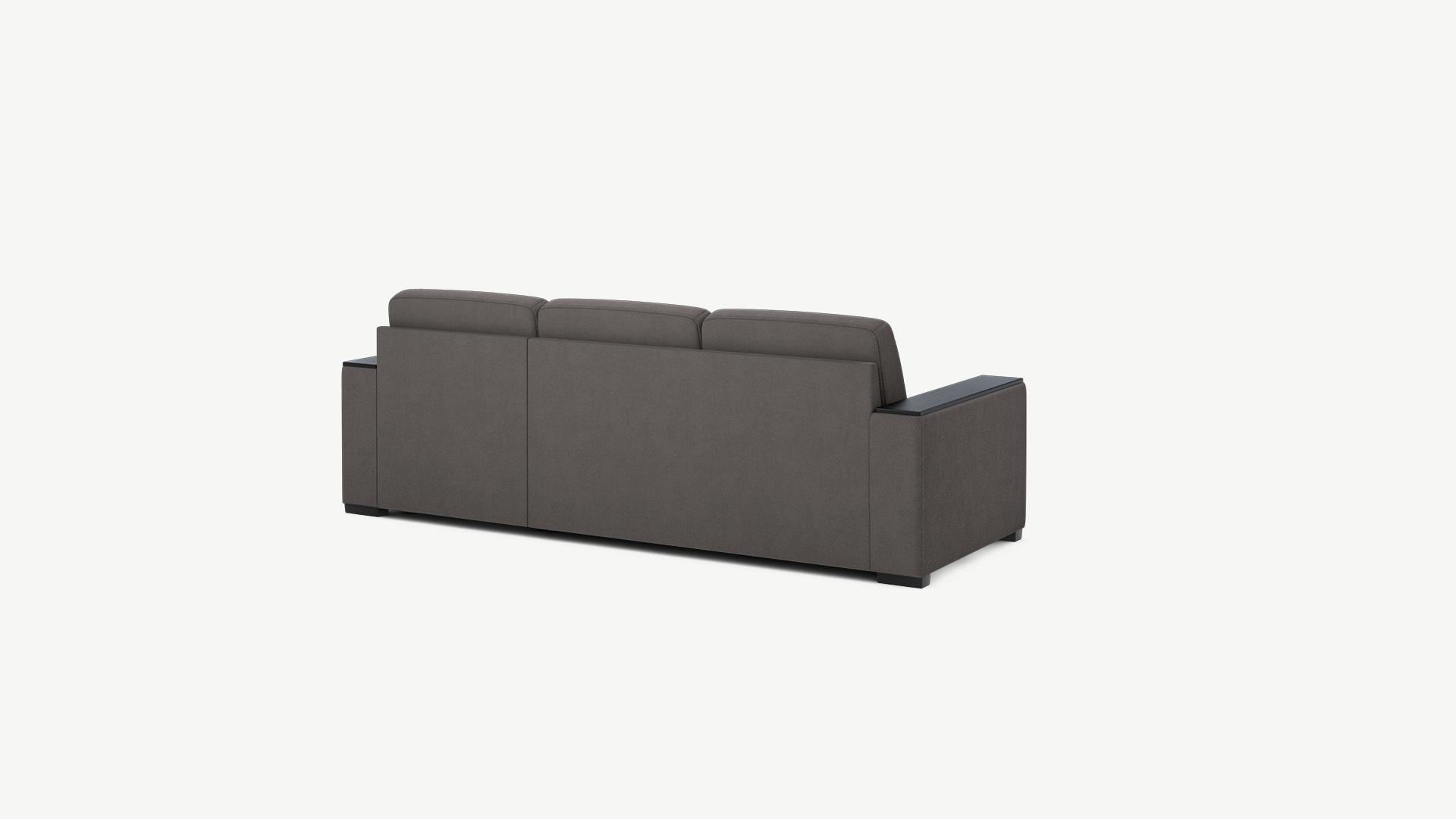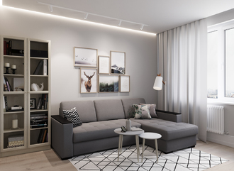 Спинка, выполненная в обивочной ткани, позволяет ставить диван в центре комнаты и зонировать пространство.