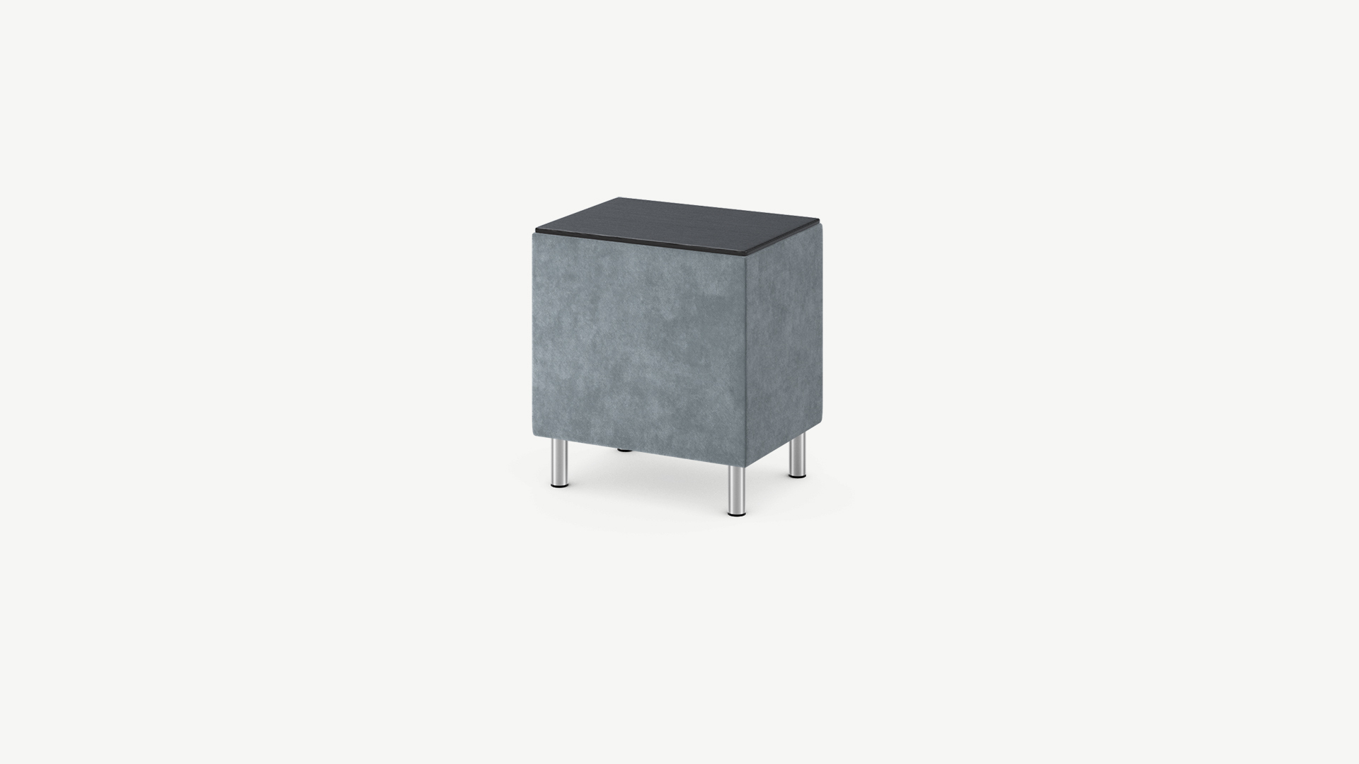 Обратная сторона тумбы, выполненная в обивочной ткани, позволяет ставить ее в центре комнаты и зонировать пространство.
