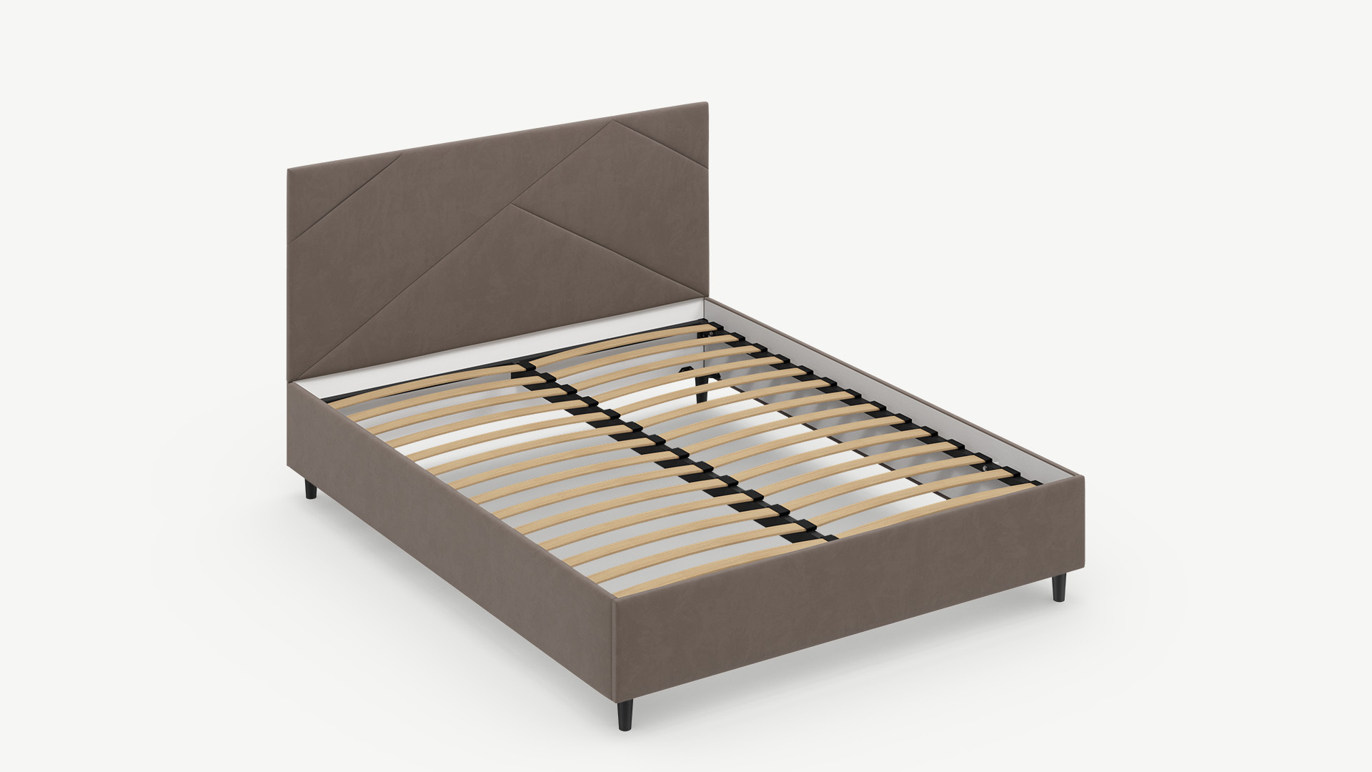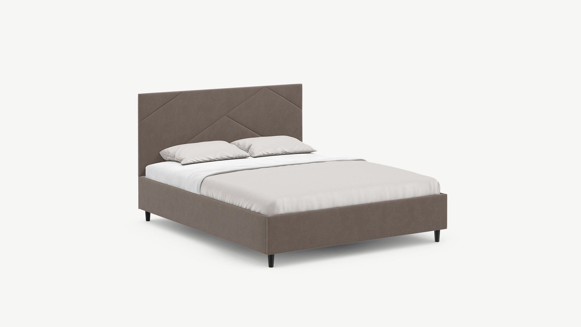 MOON FAMILY 1257 привлекает внимание оригинальным исполнением: широкие полосы ткани эффектно пересекают периметр изголовья, создавая на нем графический орнамент. Лаконичные формы объемных царг создают единый гармоничный образ и фокусируют внимание на центральном текстурном элементе кровати.