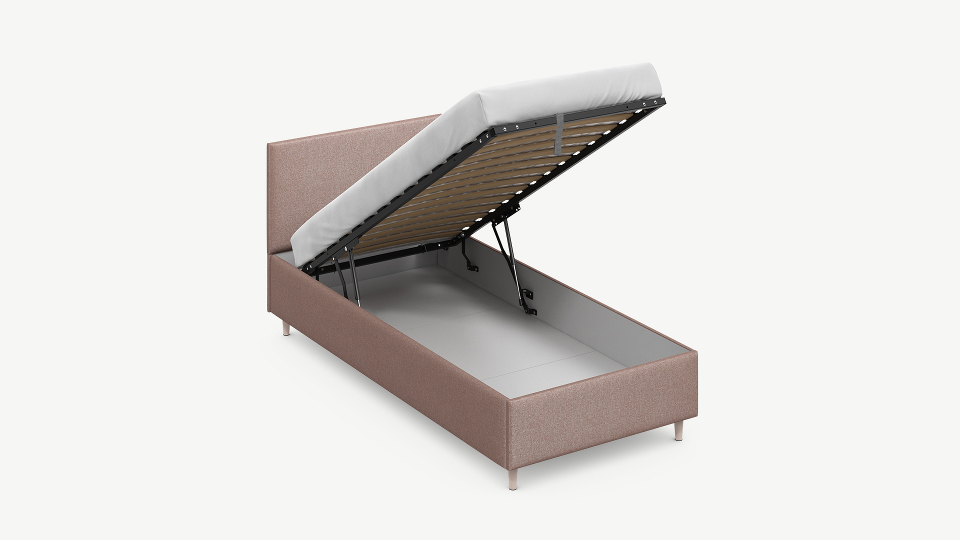 • Скрытая под основанием вместительная емкость без внутренних перегородок позволяет использовать всю площадь подкроватного пространства для хранения вещей.