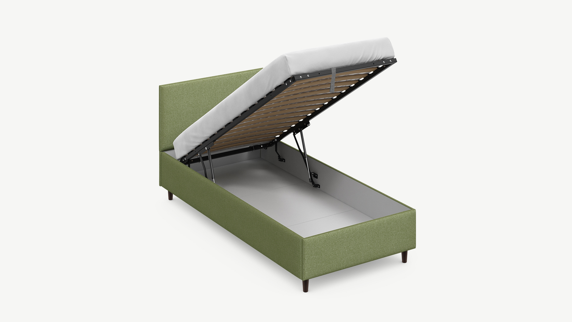 • Скрытая под основанием вместительная емкость без внутренних перегородок позволяет использовать всю площадь подкроватного пространства для хранения вещей.