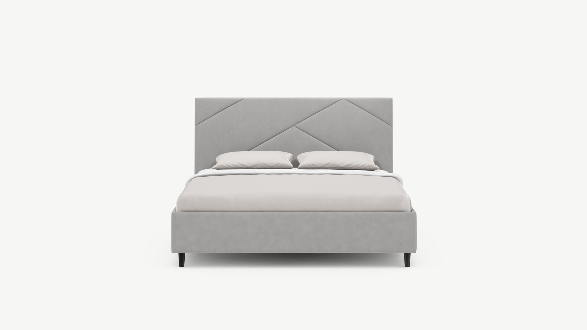 MOON FAMILY 1257 привлекает внимание оригинальным исполнением: широкие полосы ткани эффектно пересекают периметр изголовья, создавая на нем графический орнамент. Лаконичные формы объемных царг создают единый гармоничный образ и фокусируют внимание на центральном текстурном элементе кровати.