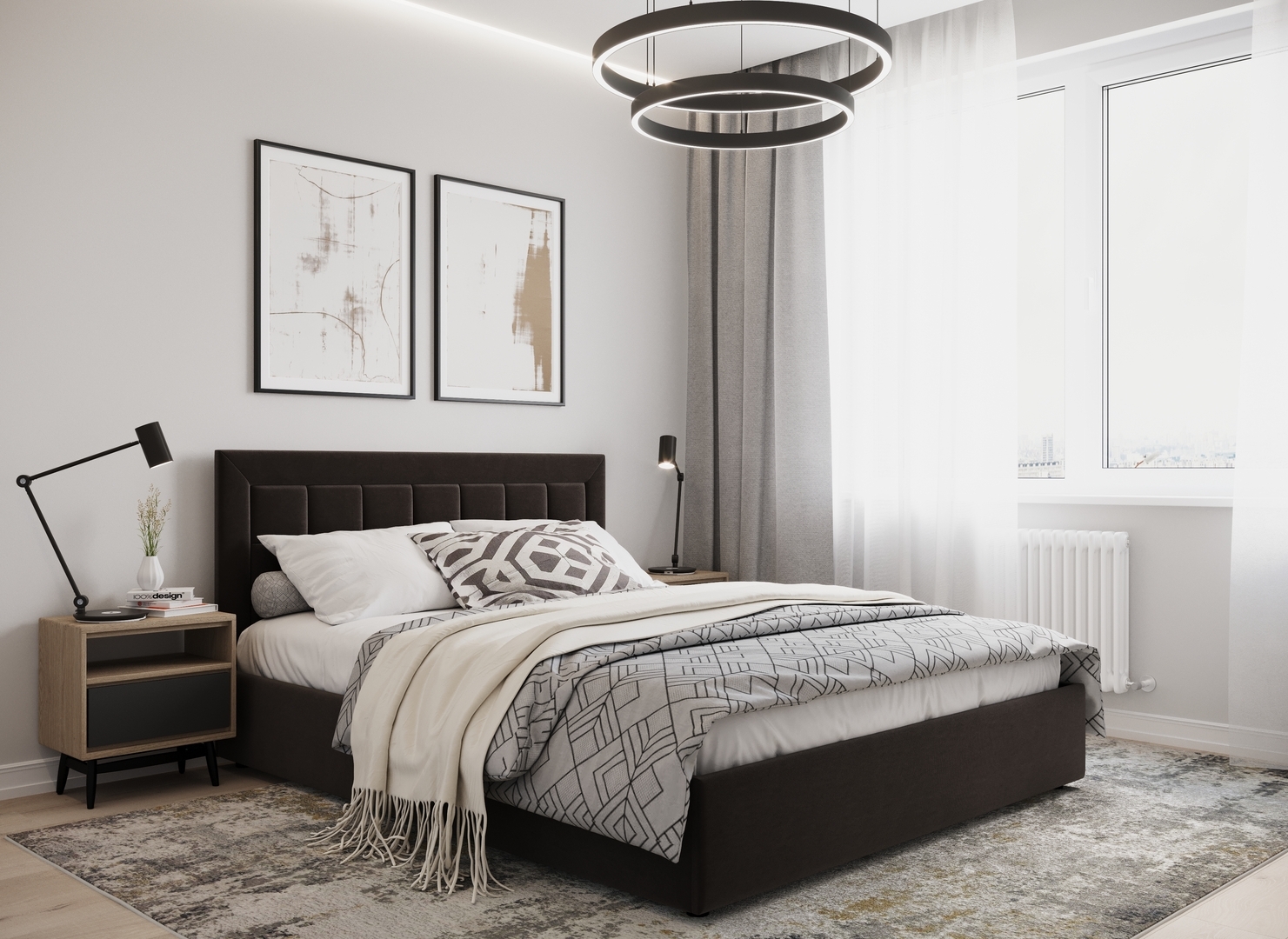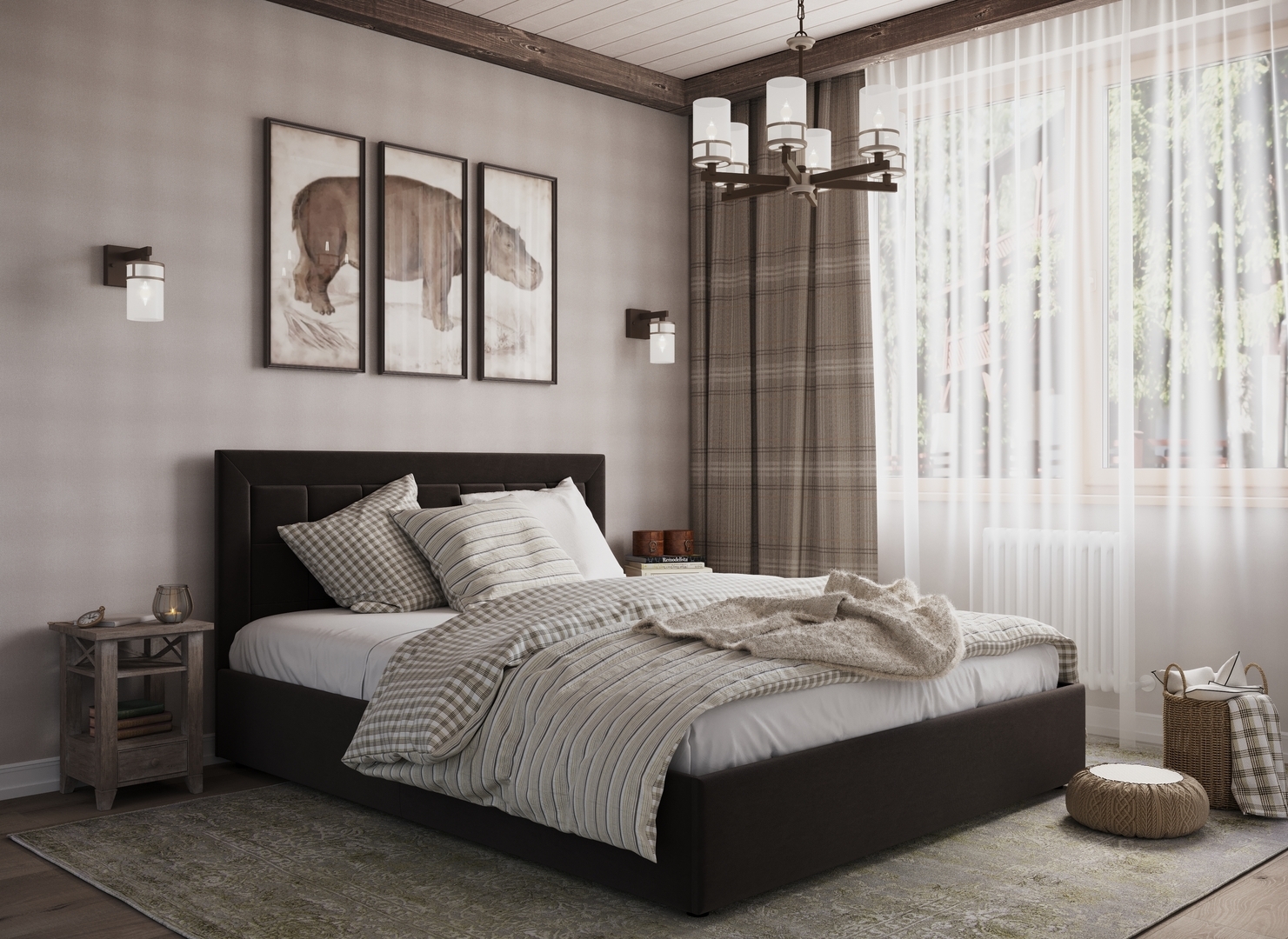 Создать гармоничный интерьер и завершить образ спальни помогут дополнительные аксессуары, например: тумбы, банкетки, подушки.