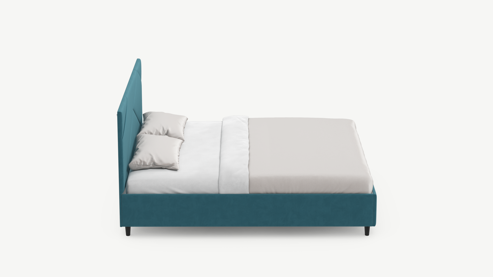 MOON FAMILY 1257 привлекает внимание оригинальным исполнением: широкие полосы ткани эффектно пересекают периметр изголовья, создавая на нем графический орнамент. Лаконичные формы объемных царг создают единый гармоничный образ и фокусируют внимание на центральном текстурном элементе кровати.
