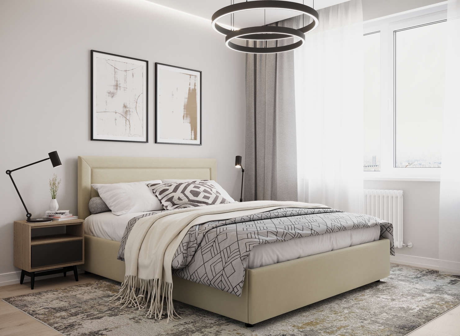 Создать гармоничный интерьер и завершить образ спальни помогут дополнительные аксессуары, например: тумбы, банкетки, подушки.