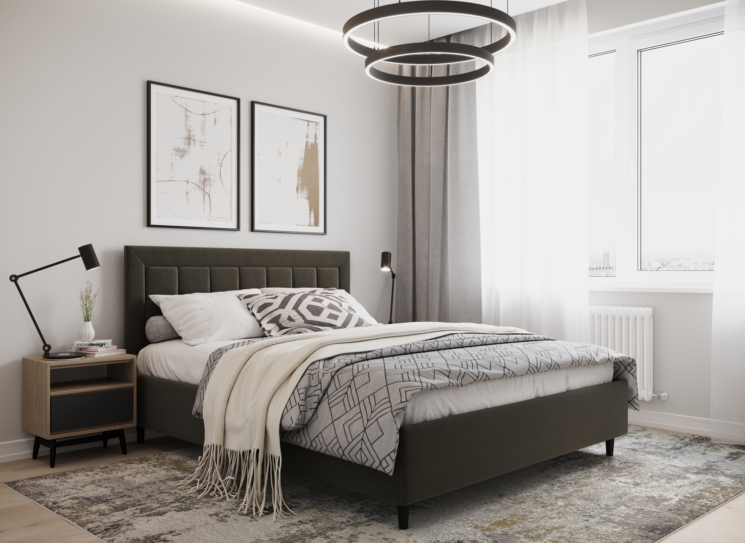 Создать гармоничный интерьер и завершить образ спальни помогут дополнительные аксессуары, например: тумбы, банкетки, подушки.
