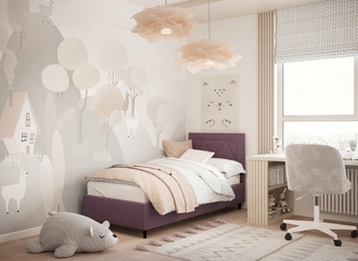 Фактура обивочного материала подбирается дизайнерами с учетом технологических и стилевых особенностей кровати.