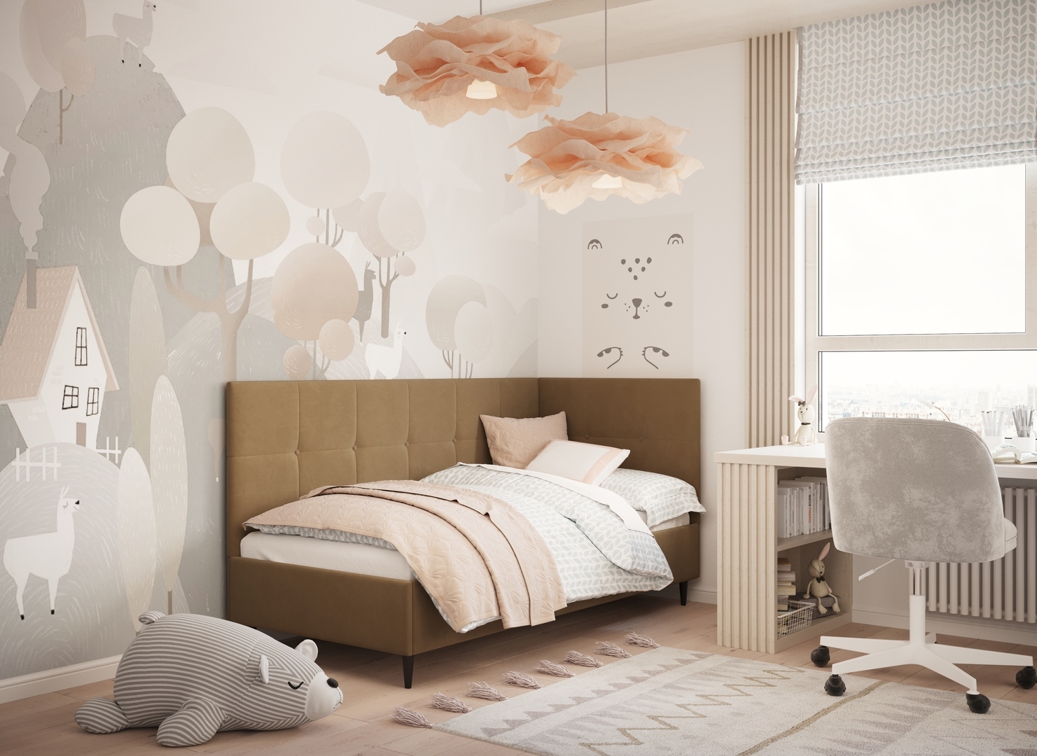 MOON FAMILY 1261 объединяет функциональность и стиль, создавая гармоничное пространство для отдыха и творчества. Кровать доступна в левостороннем и правостороннем исполнении, что позволяет легко адаптировать ее под любые интерьерные особенности.