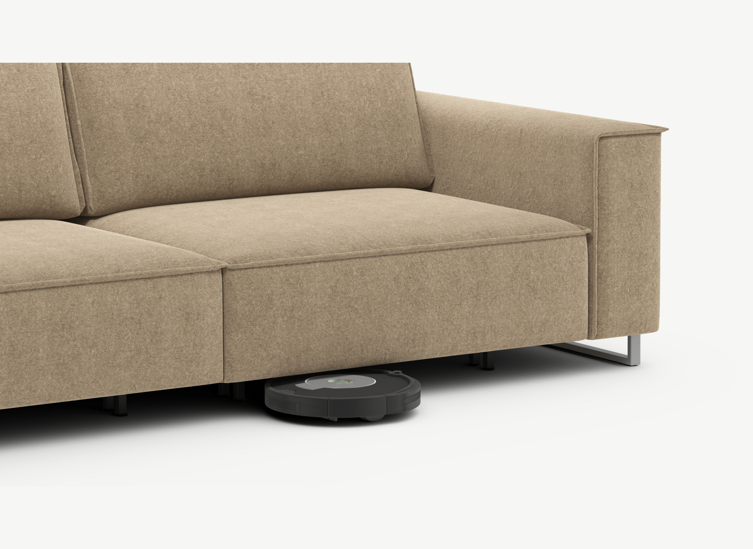 Благодаря высоким прямоугольным опорам под диваном проходит робот-пылесос и легко проводится влажная уборка, что обеспечивает чистоту и порядок в доме (при отсутствии бельевого короба под диванной секцией). Опоры представлены в четырех стандартных цветах на Ваш выбор: Графит, Серебро, Беж и Шоколад. Возможность выбора цвета позволяет создать максимально гармоничный интерьер.