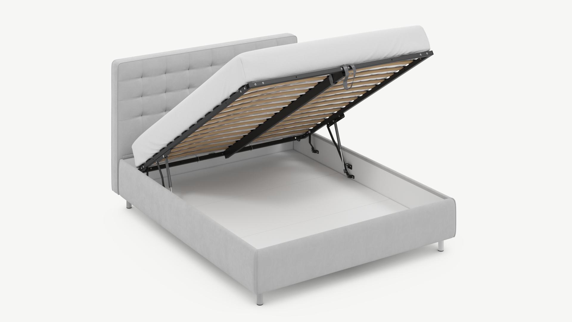 • Скрытая под основанием вместительная емкость без внутренних перегородок позволяет использовать всю площадь подкроватного пространства для хранения вещей.