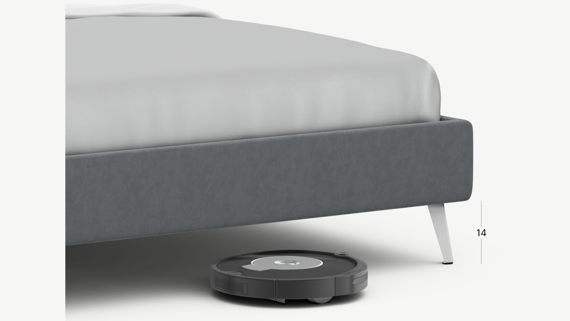 Высокие металлические опоры наклонной формы создают над полом достаточный просвет для движения робота-пылесоса, что помогает поддерживать чистоту и порядок в доме.